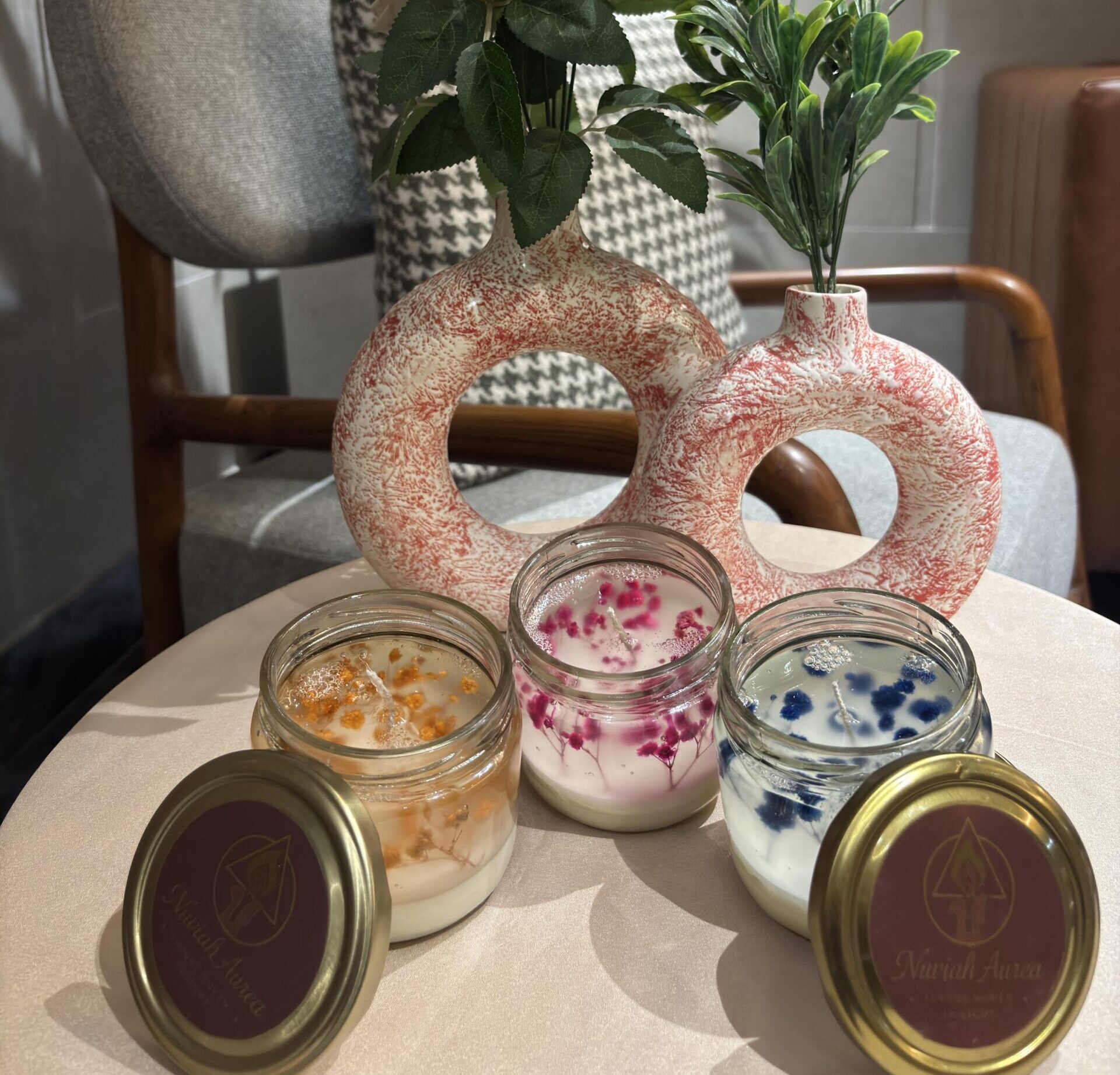 🌸✨ A floral whisper, a scented glow — crafted with love by Nuviah Aurea 🕯️💖 Each candle is hand-poured, infused with soothing scents, and adorned with real dried florals to bring calm and beauty to your space. 🌿
